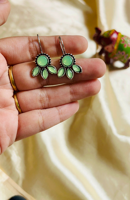 Green and pink Stone Flroal Jhumka